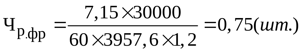 Тшт.к.фр = 7,15 + 0,038×6,53 = 7,39 (мин.)