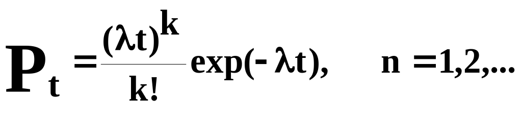 вероятность того, что за любой промежуток времени Т в магазин прибудет k покупателей (клиентов, заявок…) может быть определена как