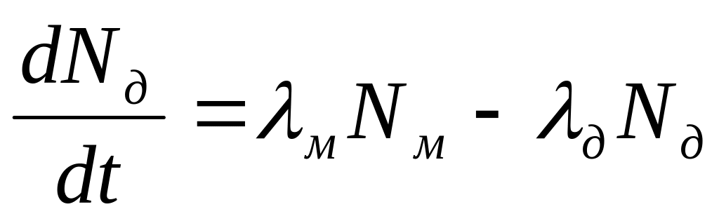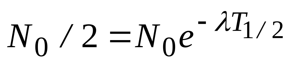де N0 – кількість ядер, що не розпалися, у даному об’єму речовини в початковий момент часу t = 0; N – кількість ядер, що не розпалися, у тому же об’єму до моменту часу t; ( – стала розпаду, що має сенс ймовірності розпаду ядра за 1с і дорівнює долі ядер, що розпадаються за одиницю часу.