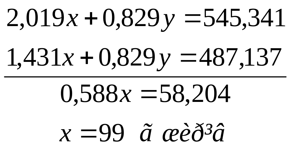 кількість вуглеводів можна обчислити, підставляючи значення х у будь-яке з рівнянь: