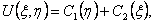 Преобразованное уравнение легко решается двумя последовательными интегрированиями (сначала по переменной η , а затем по ξ), а общее решение U(ξ,η) имеет вид
