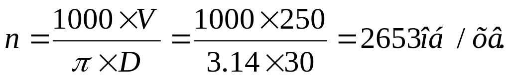 3. Призначаємо швидкість різання, що допускається ріжучими властивостями ін- струменту і матеріалу заготовки: