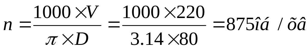 Визначаємо швидкість різання V=220м/хв.. (карта 109, ст..210)