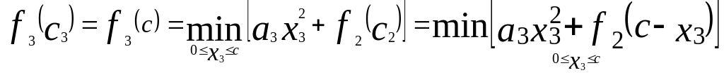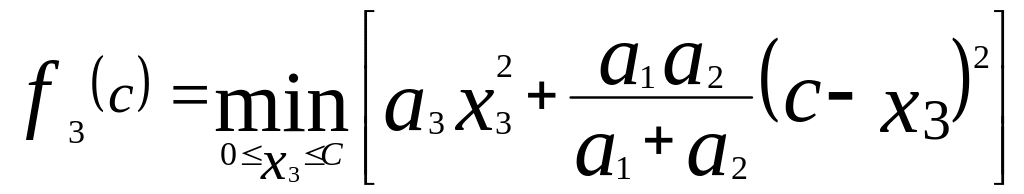 которое можно трактовать таким образом: найти такую функцию от С, которая в пределах 0 ≤ х3 ≤ С достигала бы минимума при выделении части х3 ресурсов для третьей составляющей функции F и части (с х3) ресурсов для оставшихся двух составляющих.