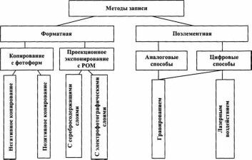 Поелементний запису може здійснюватися з РОМ або проміжних речових оригіналів з аналогової схемою (зчитування оригіналу і запис інформації на формный матеріал.