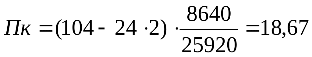 Время простоя на текущий ремонт оборудования не учитываем, т.к. норма простоев оборудования в отдельных видах ремонтов не превышают продолжительности выходного дня. Рт=24ч