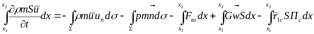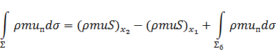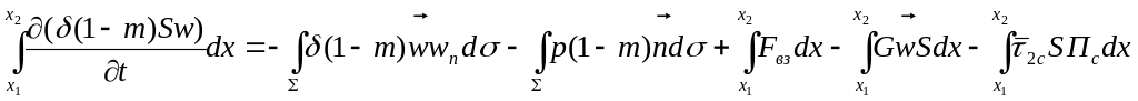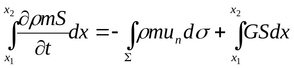 Рассмотрим одномерное течение двухфазной смеси в фиксированном объеме W, определенном координатами x1, x2 (рис. 1.2.) и ограниченном поверхностью Σ. Как показано выше, в однородной среде объемная пористость равна поверхностной. Данное утверждение, строго говоря, не выполняется на непроницаемых поверхностях (в нашем случае боковая поверхность канала). Тем не менее, будем считать, что гипотеза сплошной среды справедлива как угодно близко к боковой поверхности канала. Тогда, не смотря на не проницаемость стенок, можно принять, что пористость среды на стенке равна объемной пористости. Очевидно, данное предположения будет выполняться тем точнее, чем сильнее неравенство ℓ/dкн << 1, где ℓ - характерный размер включений. Рамки гипотезы сплошной среды предполагают также, что на боковой поверхности происходит абсолютно неупругое взаимодействие твердой фазы (имеет место условие