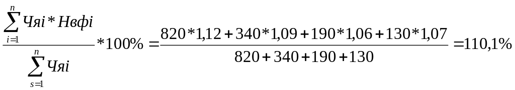 Відсоток виконання норм виробітку по цеху запроектований (Нвп%) складає, 115%.
