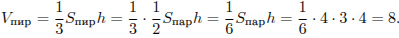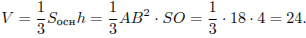 Найдите объем пирамиды, высота которой равна 6, а основание – прямоугольник со сторонами 3 и 4.