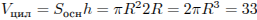 Объем цилиндра равен произведению площади основания ны высоту. Площадь основания цилиндра равна площади большого круга вписанного шара, а высота цилиндра равна диаметру вписанного шара. Поэтому