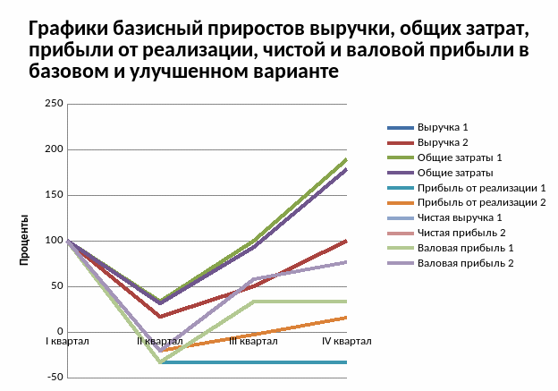 3)Предложение по улучшению деятельности фирмы позволило увеличить итоговый базисный прирост прибыли от реализации ( с 0% до 15 %).