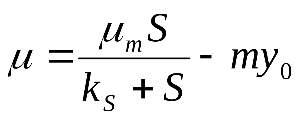Принимается, что затраты субстрата на поддержание жизнедеятельности пропорциональны концентрации биомассы: