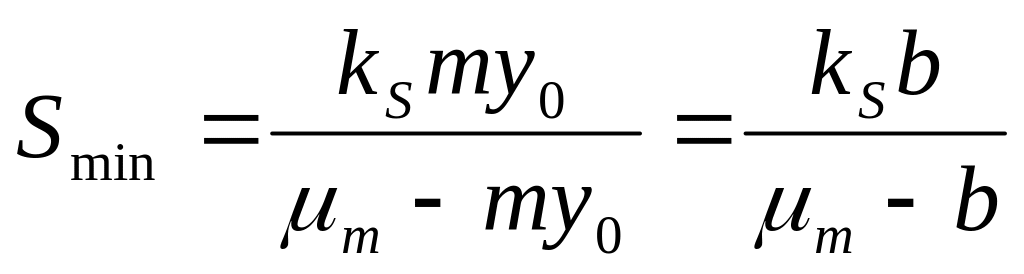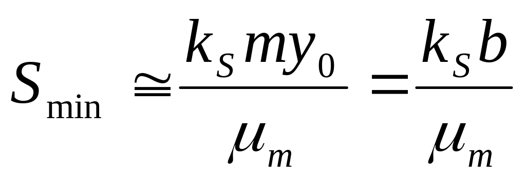 Так как для органических субстратов =1-10 мг/л, то составляет всего 0,01-0,1 мг/л. Однако при лимитировании роста по диффузии субстрата величина может быть значительно больше (до нескольких мг/л) и в соответствии с (2.13) определяется по формуле: