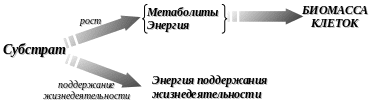 Согласно модели «энергии поддержания» внеклеточный субстрат используется клетками в двух направлениях: на рост и получение энергии поддержания жизнедеятельности: