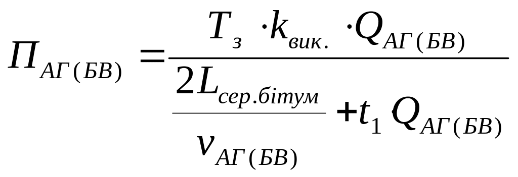 де QАГ(БВ) – місткість цистерни автогудронатора (бітумовоза);