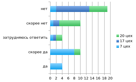 Анкетирование сотрудников цехов №№7, 17, 20 со стажем не более 3 лет и возрастом до 35 лет.