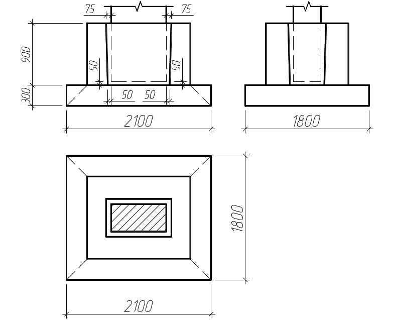 Отдельный железобетонный монолитный фундамент под колонну (табл. 2.1 [3]) |
