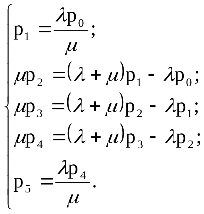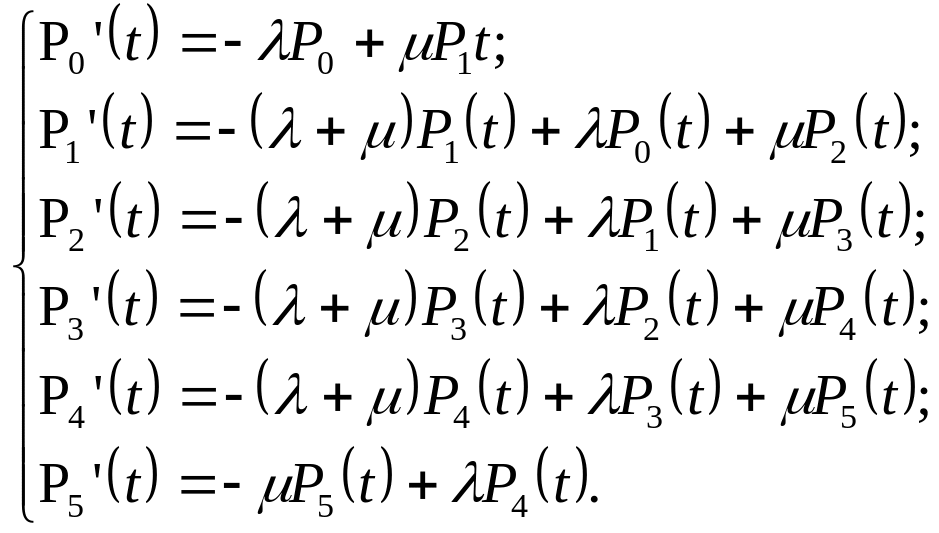 Потік заявок послідовно переводить систему з будь-якого лівого стану в сусідній правий з однією і тією ж інтенсивністю . Інтенсивність потоку обслуговування, що переводить систему з будь якого правого стану в сусідній лівий стан дорівнює . Можливі стани системи: