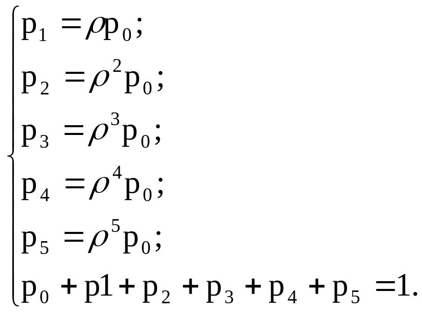 Знайдемо значення показника р (імовірність того, що чергова заявка буде обслужена техніком) та значення ймовірностей знаходження системи в і-му стані. Відповідні та отримані значення зображені на рисунку 2.9.