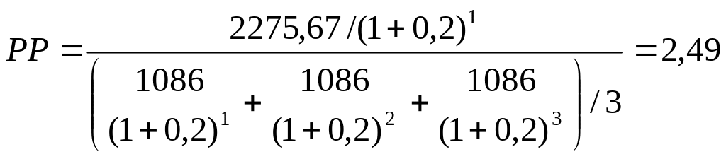 Результат розрахунку індексу окупності свідчать про те що витрачені кошти окупляться за 2,49 року.