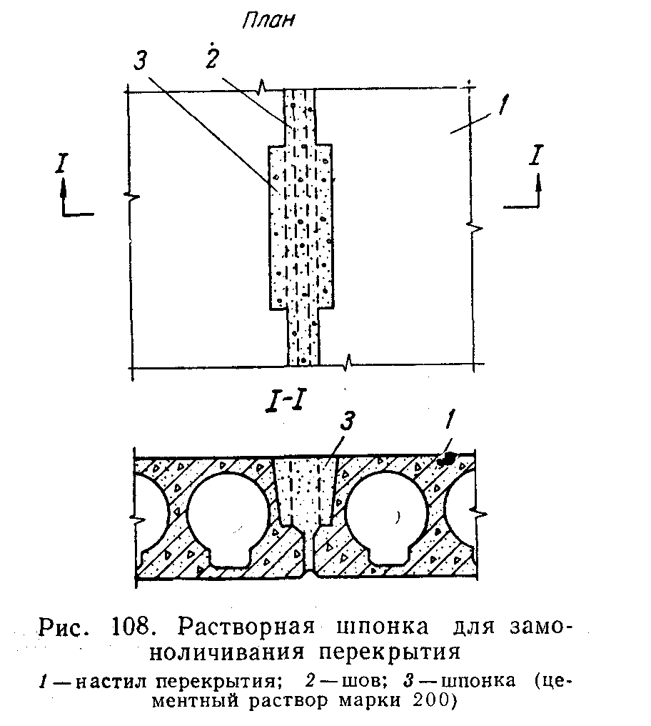 Перекрытия в домах унифицированной конструктивно-технологической системы Госгражданстроя проектируют монолитными, сборно-монолитными или сборными. Монолитные перекрытия выполняют толщиной 160 мм в виде неразрезных многопролетных плит сплошного сечения с опиранием на несущие стены по контуру конструктивных ячеек или по трем сторонам.