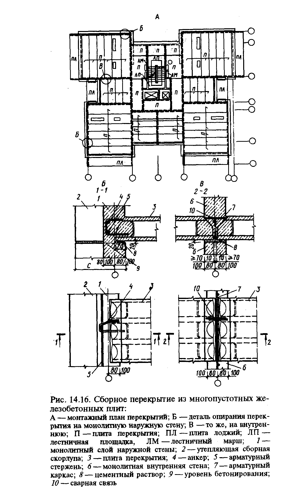 Остальные конструкции жилой части монолитных зданий (лестницы, перегородки, лифтовые шахты и др.) выполняют сборными из унифицированных изделий, так же как и в зданиях других строительных систем.