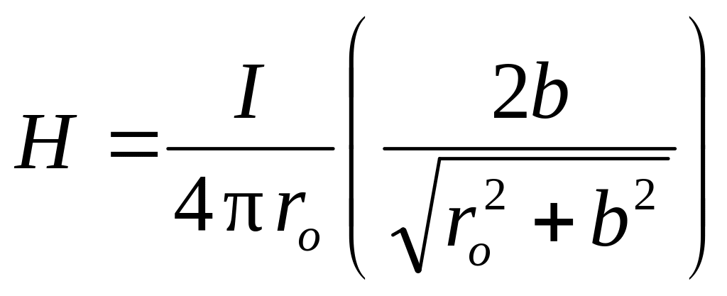 Учитывая, что в настоящей работе длина проводника 2b много больше расстояния r0 от проводника до точки наблюдения магнитного поля, формулу (3) можно записать в виде