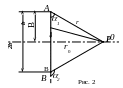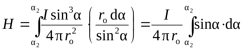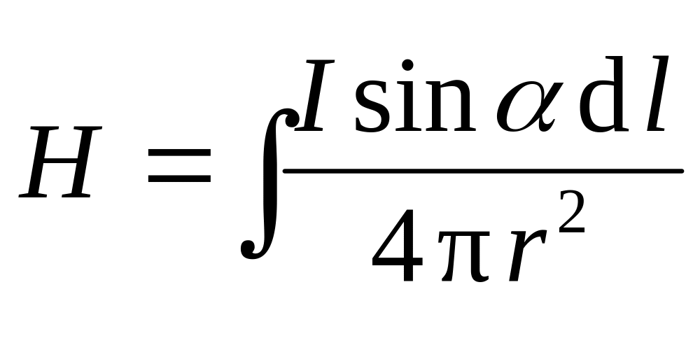 где ro – кратчайшее расстояние от точки P до проводника с током, 1 и 2 – углы между крайними элементами проводника и соответствующими радиус-векторами PA и PB.