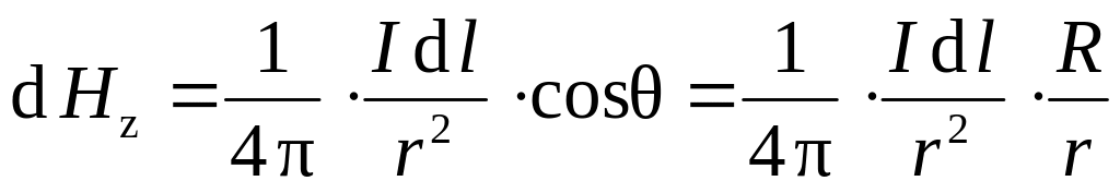 Интегрируя по всему кольцу, получим dl = 2R. Поскольку, согласно теореме Пифагора r2 = R2 + z2, то искомое поле в точке на оси по величине равно