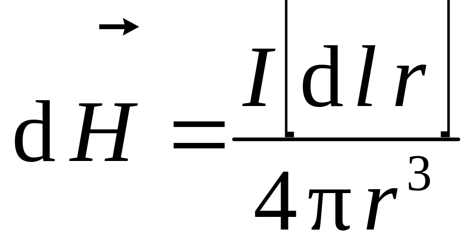где I – сила тока в проводнике, dl – вектор, имеющий длину элементарного отрезка проводника и направленный по направлению тока, r – радиус вектор, соединяющий элемент с рассматриваемой точкой P.