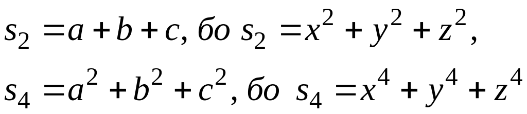 - •Представлення симетричних сум через елементарні симетричні многочлени: