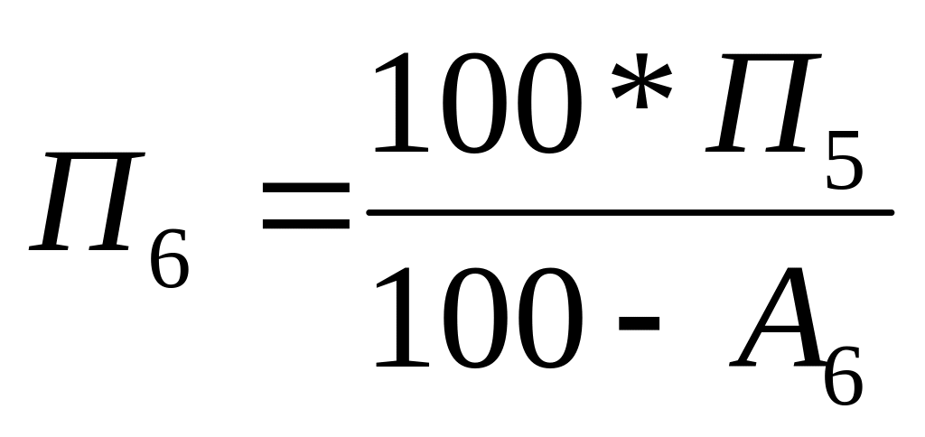 Процент отходов при лущении А6, %, находится из таблицы 4.3 как сумма процентов карандашей и шпона рванины. Объем сырья в чураках П6, мЗ/ч, определяется по формуле