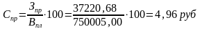Для получения ста рублей выручки от реализации продукции (работ, услуг) предприятие затратит 4,96 руб. прочих расходов.