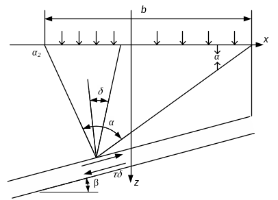τσ=Ро/π*sinα*sin2δ; δ- угол между направлением нормали к площадке и направлением действия наибольшего главного напряжения.