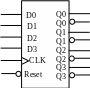 1. Микросхема 74x 175 – четырехразрядный регистр на базе D-триггеров, управляемых фронтом синхросигнала, с асинхронным инверсным сбросом.