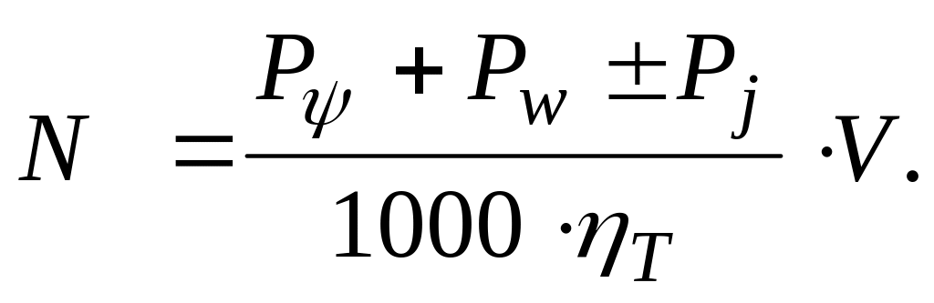 Серед наведених складових обов'язково враховуються постійні втрати потужності: у трансмісії NТ = N∙ƞТ, на подолання опору кочення коліс Nφ та повітря Nw. У загальному вигляді використану сумарну потужність N двигуна можна подати так: