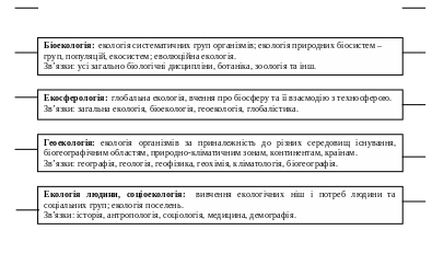 Екологія перетворилася із часткового розділу біології, знайомого лише вузькому колу спеціалістів, у комплекс фундаментальних і прикладних дисциплін, котрий Микола Реймерс (1992 р.) назвав мегаекологією, тобто “великою екологією”. На даному етапі більш широко використовується термін макроекологія. На рис. 1.1. відображені складові макроекології.