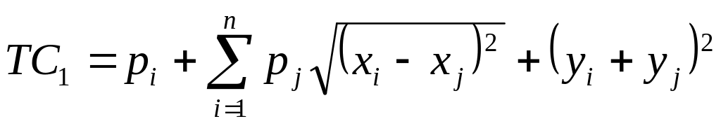 Такі ж умови зберігаються при розрахунку сумарних транспортних витрат за умов обслуговування регіонального ринку з центрів одиниць адміністративно-територіального розподілу, який здійснюється за формулою: