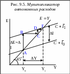 Графическое изображение эффекта мультипликатора расходов (например, мультипликатора инвестиций) представлено на рис.9.5.