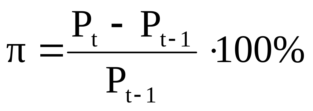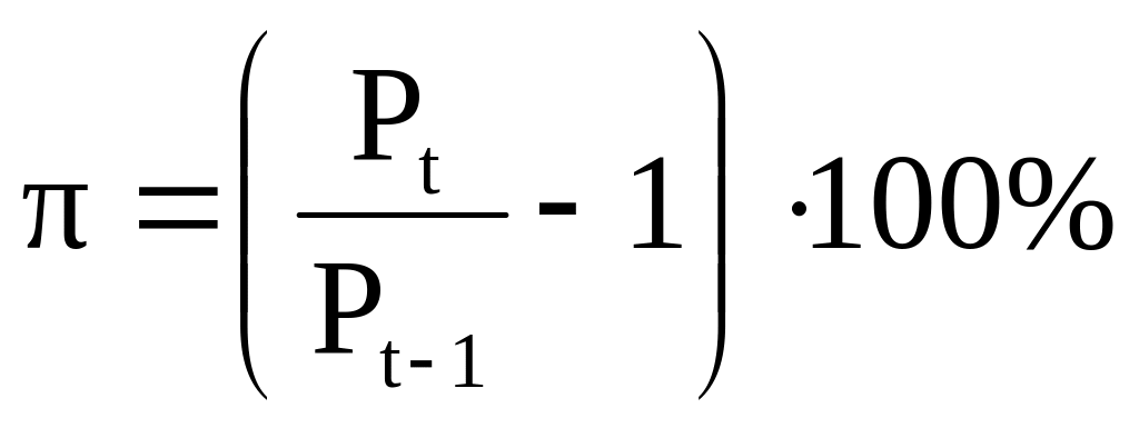 Главным показателем инфляции выступает темп (или уровень) инфляции (rate of inflation - ), который рассчитывается как процентное отношение разницы уровней цен текущего и предыдущего года к уровню цен предыдущего года: