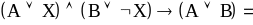 где Х-высказывание, представленное литерой в логике высказываний или предикатным символом; А и В - дизъюнкты. Данное правило известно как правило резолюций. Справедливость его можно установить, например, воспользовавшись Теоремой 1, т.е.