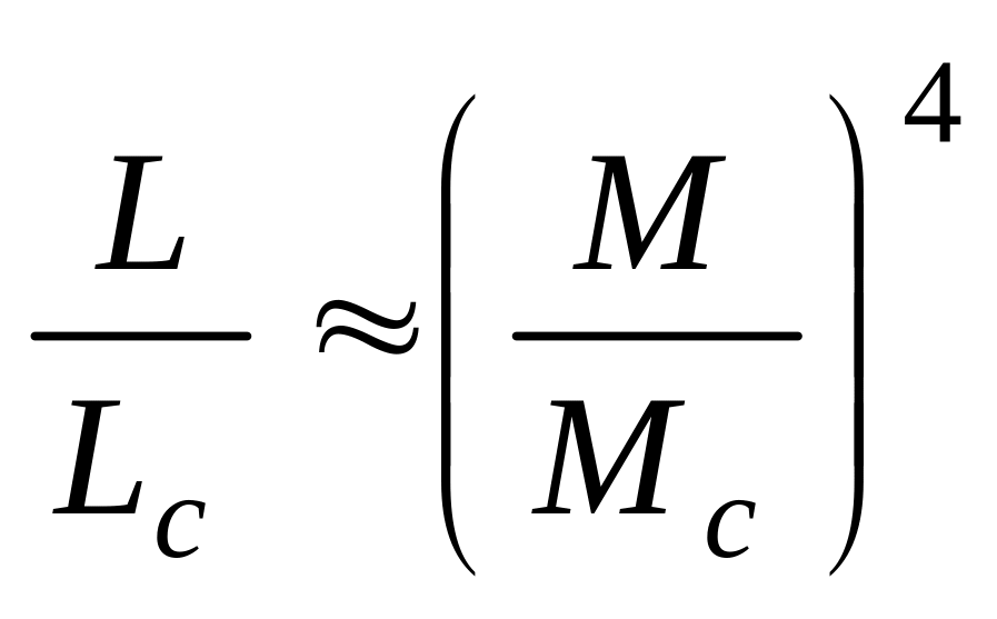 Обнаружена важная эмпирическая зависимость между массой и болометрической светимостью, изображенная на рис. Прямая на этом рисунке изображает зависимость L=M 3,9