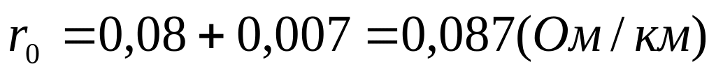 ρм – удельное сопротивление медного проводника длиной 1 км и сечение 1мм2, равное 18,8 Ом∙мм2/км;
