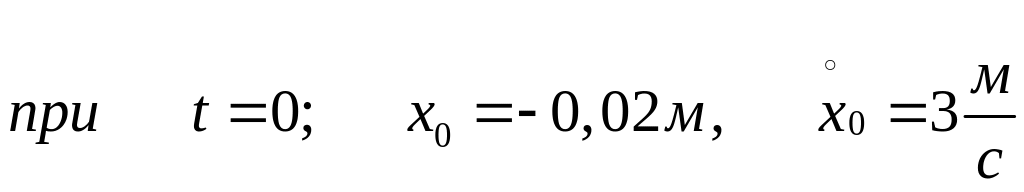 В деякий момент часу точку О зміщують із положення рівноваги вверх на х0=2см і надають швидкість ν0 = 3 м/с вертикально вниз. Одночасно ротор електродвигуна починає обертатись із постійною кутовою швидкістю ω = 1/2·ρ (ρ – частота збурювальної сили) навколо горизонтальної осі.