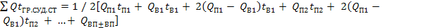 Здесь тонно-сутки груза (знаменатель) представляют произведение общего количества груза и время рейса или на судо-сутки судна за время рейса. Определенная таким образом средняя коммерческая скорость не учитывает сменности грузов и включает время балластных переходов. Она лишь в грубом приближении характеризует среднюю коммерческую скорость относительно использования флота в целом