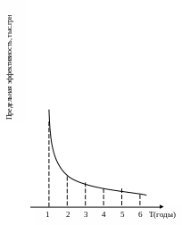 При использовании данного принципа инвестирования перед предприятием, предпринимателем встает задача: определить опытным путем либо с использованием экономико-математических методов график с оценкой эффективности капиталовложений и с его помощью понять, когда следующая порция инвестиций невыгодна, т.e. определить предельный размер инвестиций.