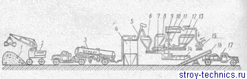 Рис. 152. Схема передвижной бгтоносмесительной установки непрерывного действия