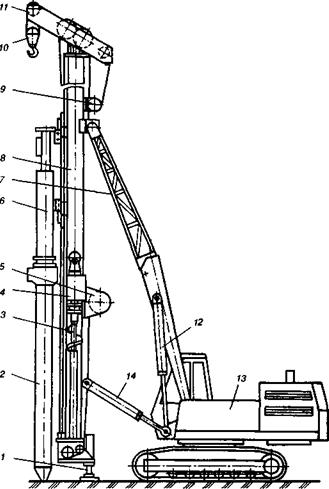 На базовой машине размещены: силовая установка, трансмиссия и аппаратура управления рабочим оборудованием копра.