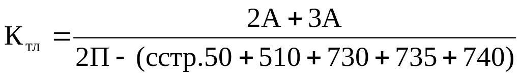 Ктл характеризует общую обеспеченность предприятия оборотными и денежными средствами для ведения хозяйственной деятельности, своевременности погашения его срочных обязательств: