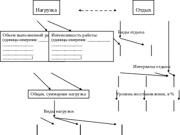 Заполните схему, отражающую характеристику нагрузки и отдыха как основных факторов, чье соотношение и чередование определяет величину воздействия упражнений на организм занимающегося.
